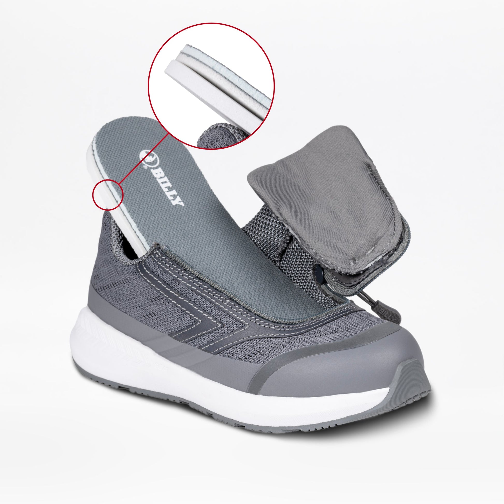 Çocuk için tasarlanmış bu BILLY ayakkabı, patentli fermuar teknolojisi sayesinde giyip çıkarmayı inanılmaz kolaylaştırır. Fermuarı açın, ayağınızı rahatça yerleştirin ve gününüze devam edin.
