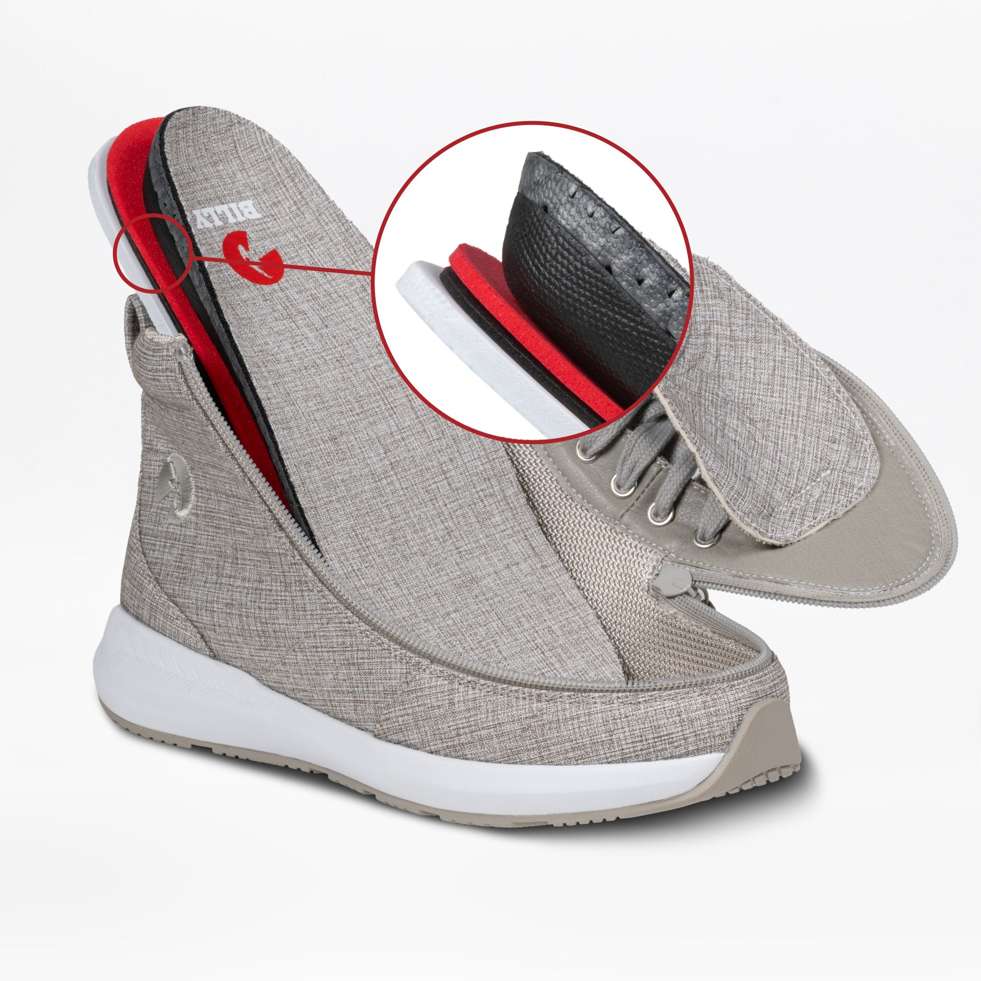 Kadın için tasarlanmış bu BILLY ayakkabı, patentli fermuar teknolojisi sayesinde giyip çıkarmayı inanılmaz kolaylaştırır. Fermuarı açın, ayağınızı rahatça yerleştirin ve gününüze devam edin.
